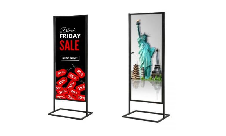 – Tính di động: Một trong những lợi ích quan trọng của standee chân sắt là tính di động. Chúng có thể dễ dàng di chuyển và đặt ở các vị trí chiến lược khác nhau. Điều này giúp dễ dàng tiếp cận đối tượng khách hàng một cách dễ dàng hơn.
