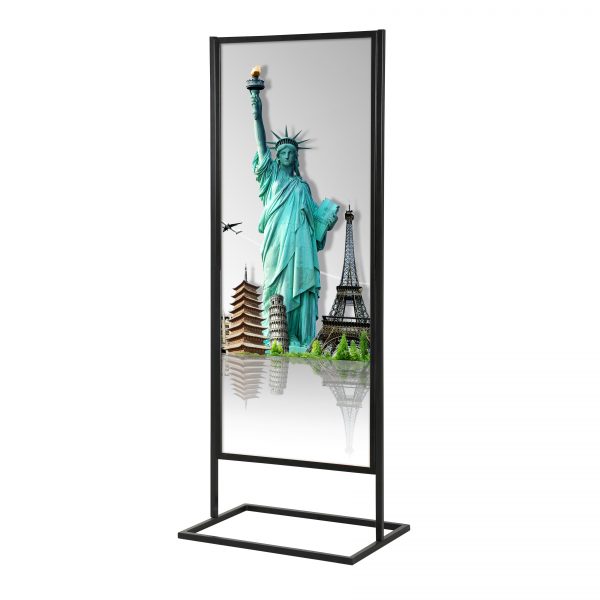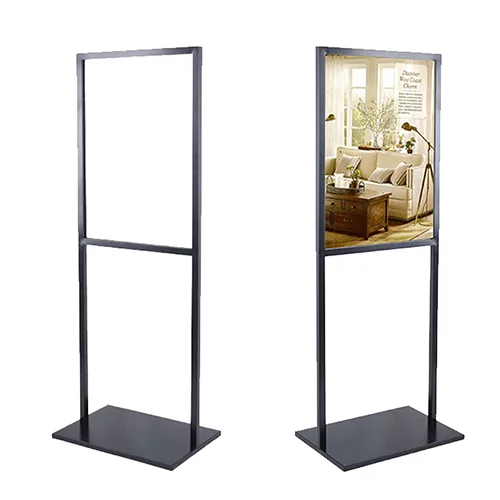 Standee đế nước một mặt hoặc hai mặt poster điều chỉnh được kích thước 60×160-80×180 cm, có thể gấp xếp được dùng để treo tấm poster quảng cáo. Sản phẩm có thể đặt ngoài trời, nơi nhiều gió, bên ngoài cửa hàng…